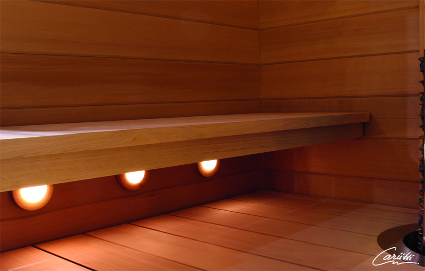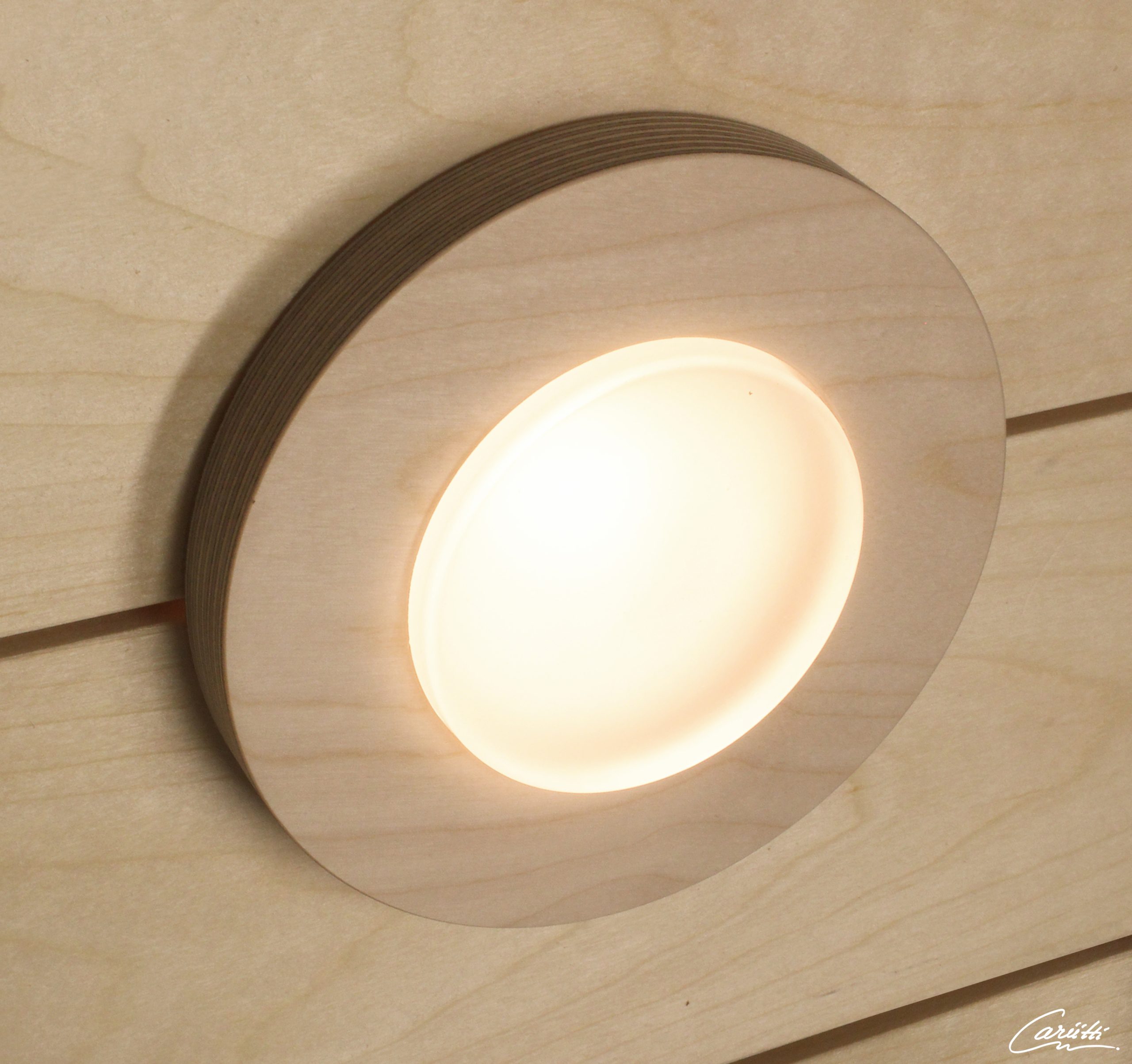 Runde Deckenlampe, die hervorragend an eine Sauna- oder Badezimmerdecke passt.