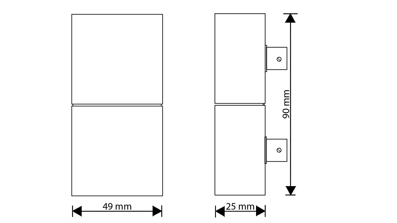 Mostly used in steam rooms. SX gives light up and down. Can be illuminated with two fibres Ø 4 mm or two Leds.