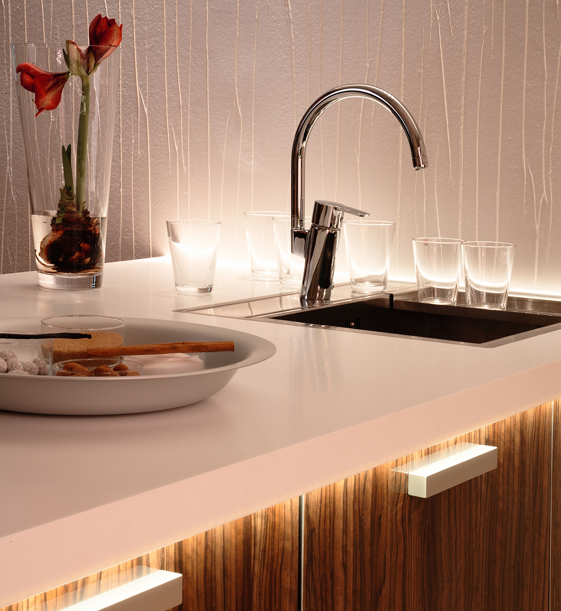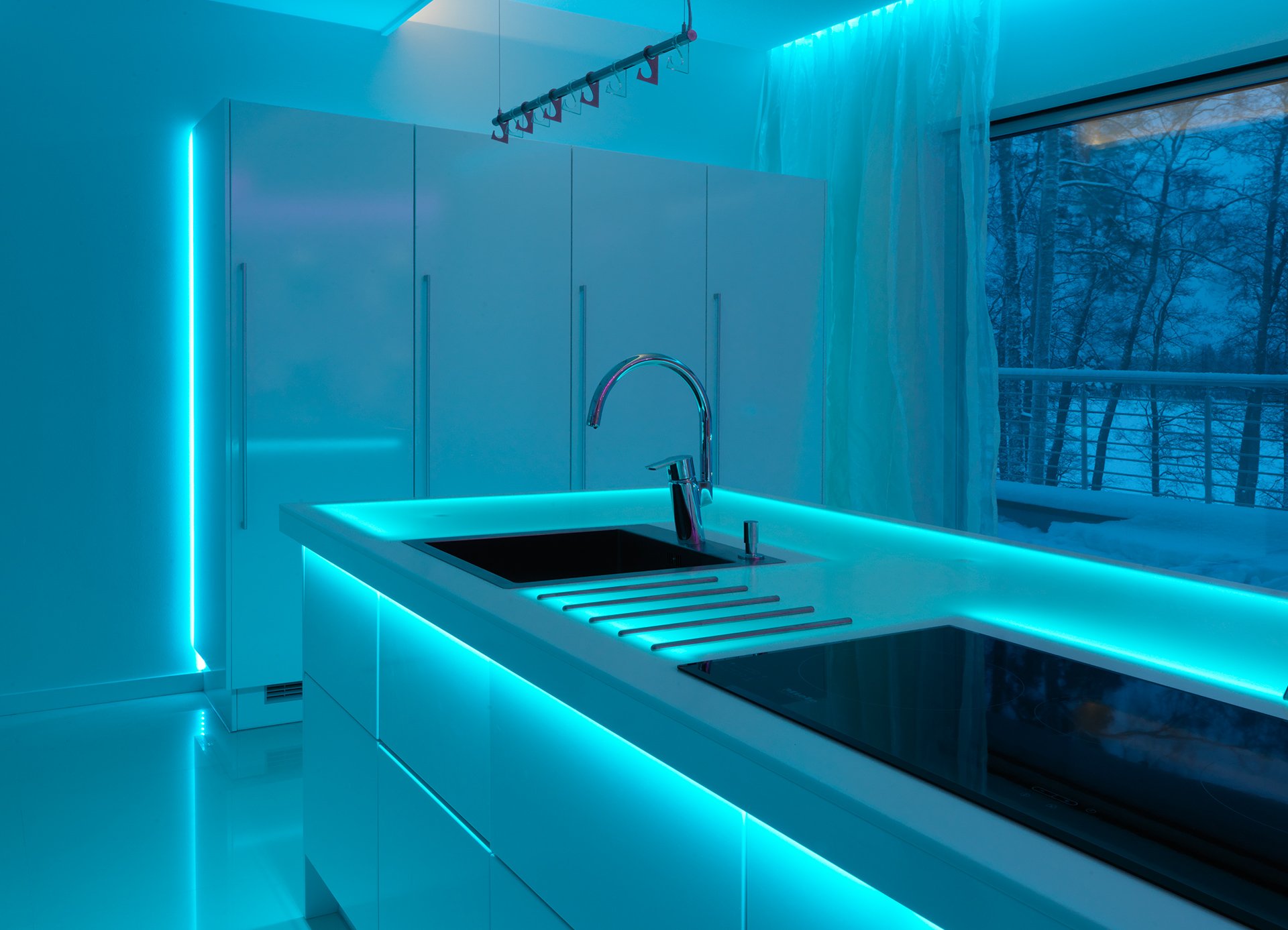 Huuhto-profiileita saa tilauksesta myös RGBW-versiona, jolloin led-valoilla voit vaikuttaa keittiön tunnelmaan.