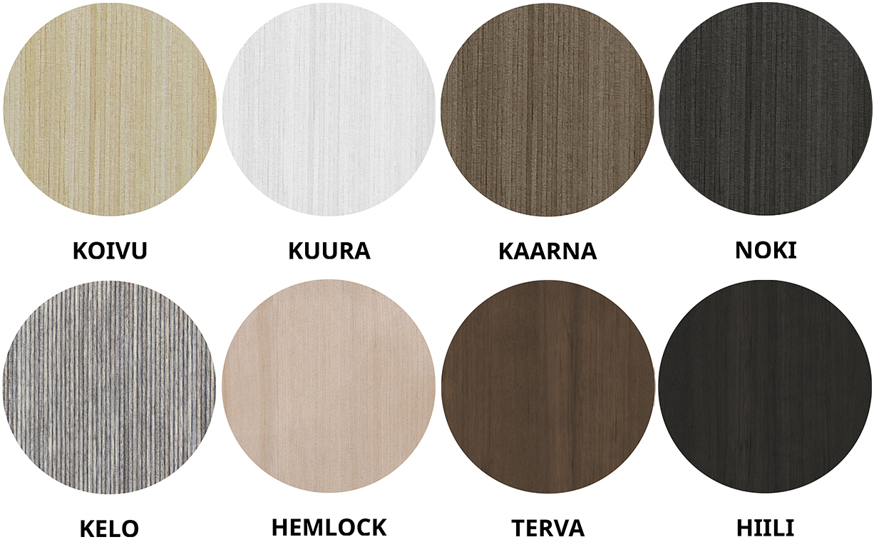 TAIVE-saunapaneelit on valmistettu kotimaisesta koivuvanerista, ja niiden pintamateriaaliksi voi valita joko lämpimän sävyisen Hemlockin tai CWP:n koivuviilun valitulla sävytyksellä. Näitä samoja vakiosävyjä tarjoamme myös lauteisiimme, joten saunatilaan on helppo luoda yhtenäinen ilme. Kaikki liimaukset on tehty säänkestävällä D4-luokan liimalla, jolla on M1-päästöluokitus. TAIVE-saunapaneelin hyvin suunniteltu rakenne takaa hyvän rasituslujuuden ja pienen kosteuselämisen.