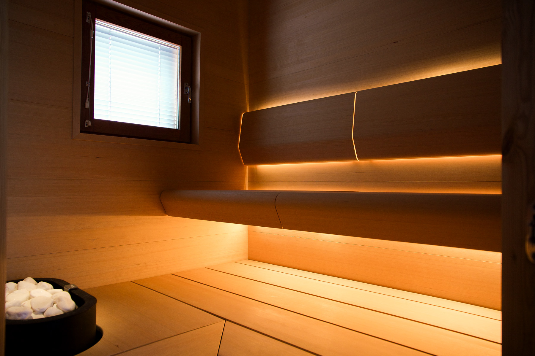 Sauna linearilla saat tasaisen valon selkänojaan sekä ylälauteen etureunaan. Tällä sarjalla saat kaksi 3 m pitkää valaisinta, lisäksi sarja sisältää LED-kiuaskuidun kiukaan valaisuun.