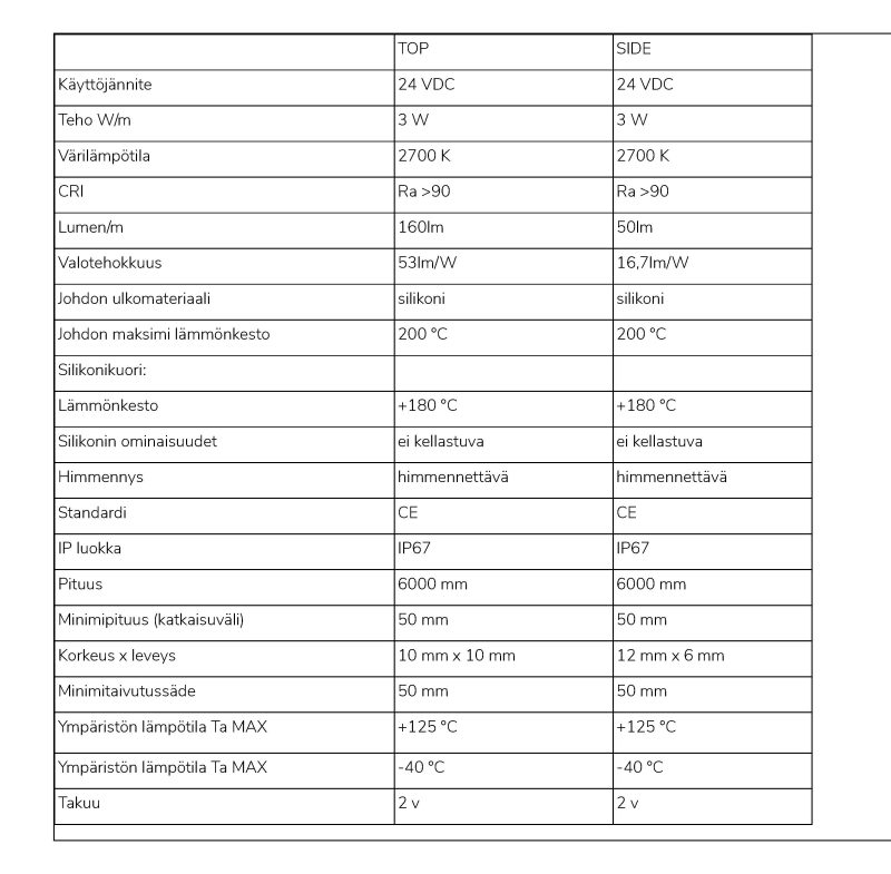 Toimitetaan 6 m asennusvalmiina sarjana, voidaan katkaista ja päättää haluttuun mittaan, katkaisuväli 50 mm.